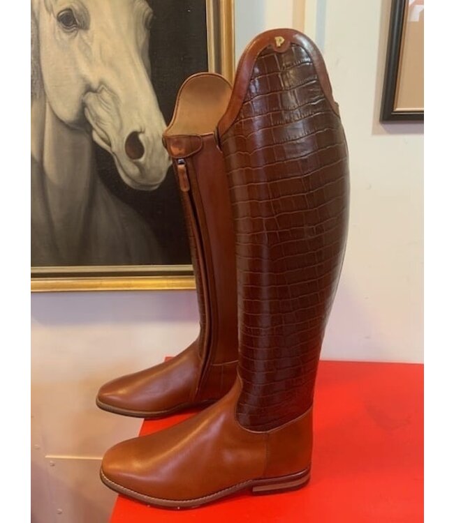 The Sublime D020 is made in cognac + croco cognac shaft c in UK size 7.5 (US size 9.5) with a shaft height of 46cm at the back (without heel) and a calf outline of 38cm crook of knee 36cm