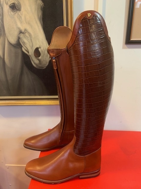 The Sublime D020 is made in cognac + croco cognac shaft c in UK size 7.5 (US size 9.5) with a shaft height of 46cm at the back (without heel) and a calf outline of 38cm crook of knee 36cm
